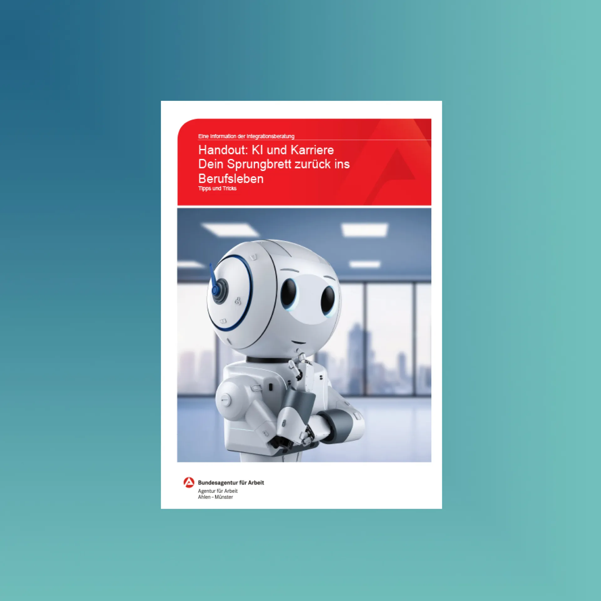 Künstliche Intelligenz verändert die Arbeitswelt – und eröffnet neue Chancen. Die Broschüre zeigt verständlich, wie KI funktioniert, wo sie im Alltag begegnet und wie sie bei der Bewerbung gezielt unterstützen kann – von der Texterstellung bis zum Training für Vorstellungsgespräche.