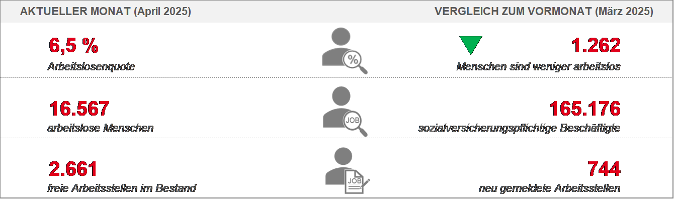 Lesen Sie hier den vollständigen Arbeitsmarktbericht April 2025 sowie den Arbeitsmarktreport April 2025.